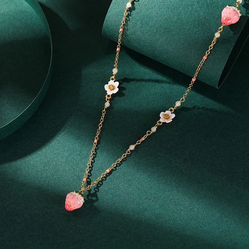 3D Pink Strawberry necklace